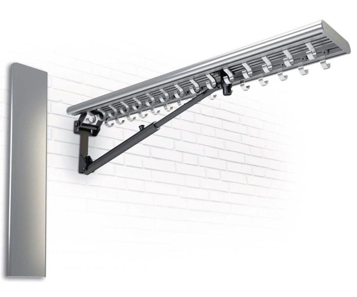 Weitere technische Eigenschaften · Material: Aluminium · Haken-Ø: 16 mm x 4mm · Höhe: 50mm · Ergänzung: Hakenabstand 100 mm · Befestigungsart: Wand · Klappgarderobe Alu.F1 · naturf.30 · Mantelh.L.1650mm ·