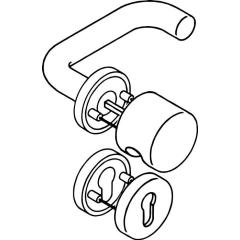 in R-Technik nach DIN 18255 und DIN EN 1906 aus mattem Polyamid, bestehend aus: Knopf 122.23PB und Türdrücker 111.23PBR, Durchmesser 23 mm und Rundrosetten 305.23PBR und 306.23PB · der Drücker erfüllt die Vorgaben der DIN EN 179 und der DIN 18040 · Gebrauchskategorie: Klasse 2 mit Vierkantstift 7 mm · Gebrauchskategorie: Klasse 4 mit Vierkantstift 8 - 8,5 mm · Ausführungsvorschlag! Bitte alle Maße und baulichen Gegebenheiten im Auftragsfall prüfen!
