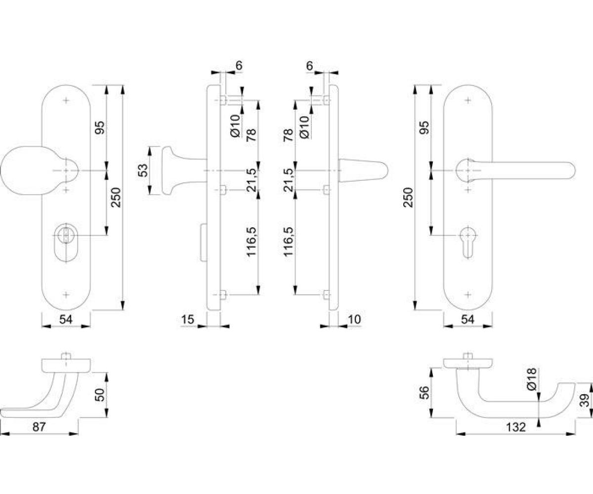 Weitere technische Eigenschaften · Breite: 54mm · Länge: 250mm · Abdeckung: mit Zylinderabdeckung · Schildstärke: 15 mm · Schutzgarnitur Paris · 86G/3332ZA/3310/138L · Alu.F1 72mm 37-47mm HOPPE ·