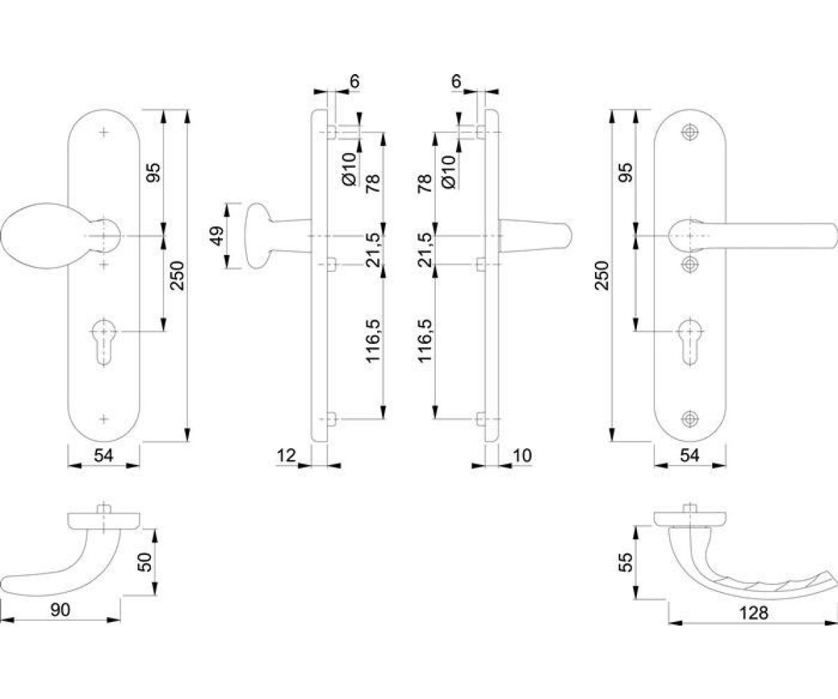 Weitere technische Eigenschaften · Breite: 54mm · Länge: 250mm · Abdeckung: ohne Zylinderabdeckung · Schildstärke: 12 mm · Ergänzung: abgesetzter Vierkant · Schutzgarnitur Tôkyô · 76G/3331/3410/1710 Alu.F1 · 92mm 66-71mm HOPPE ·
