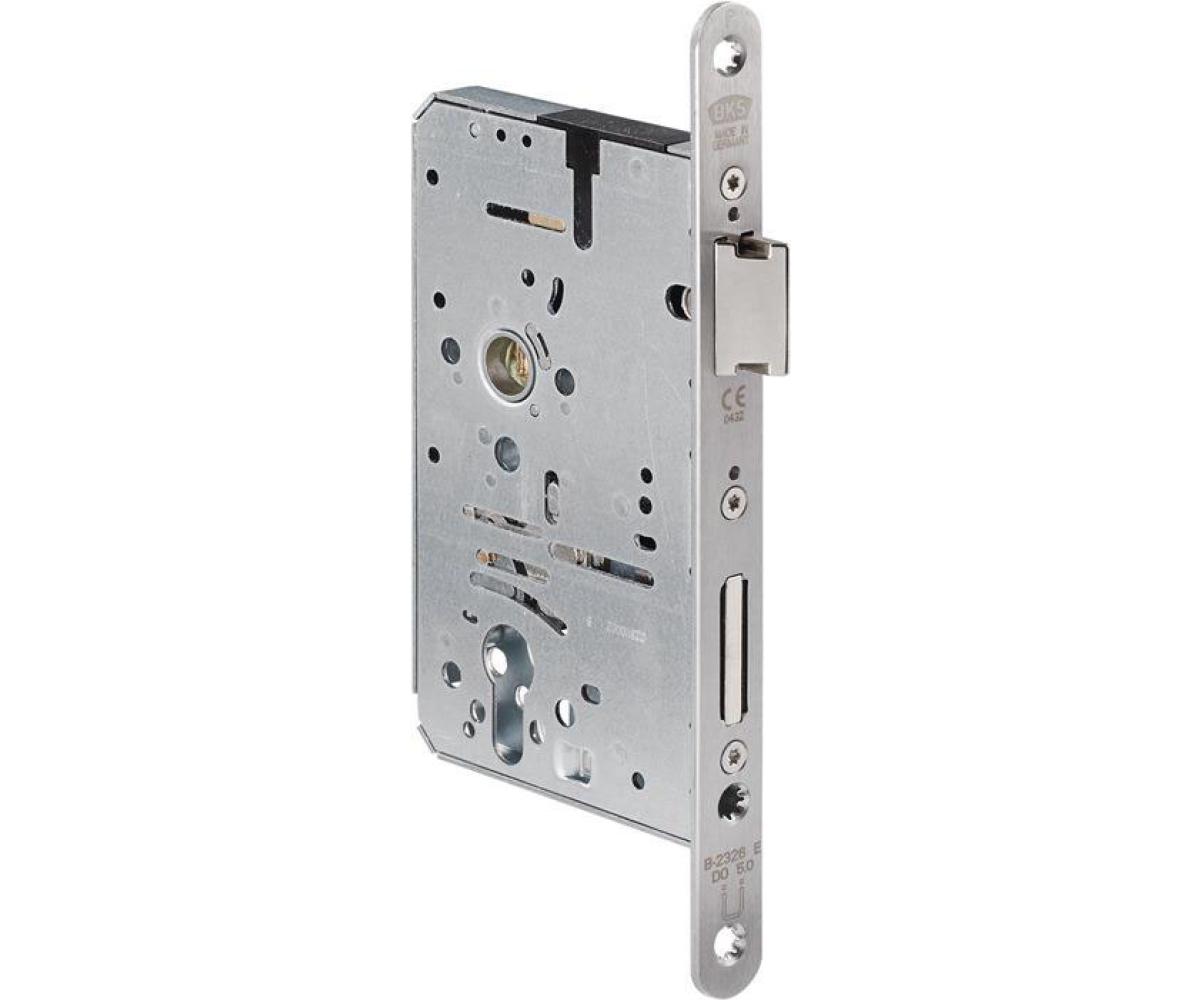 Weitere technische Eigenschaften · Riegel: Stahl · Norm: DIN 18250 · Schlosskasten: allseitig geschlossen · Riegelausschluss: 20mm · Falle: Stahl · Panik-Einsteckschloss · 2326 Fkt.E rd · 20/65/72/9mm DIN L VA BKS ·