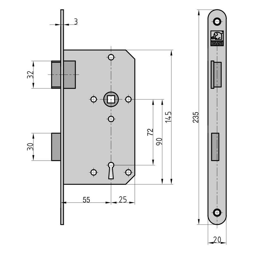 - Basi Einsteckschlösser entsprechen den Vorgaben nach DIN 18251-1.
