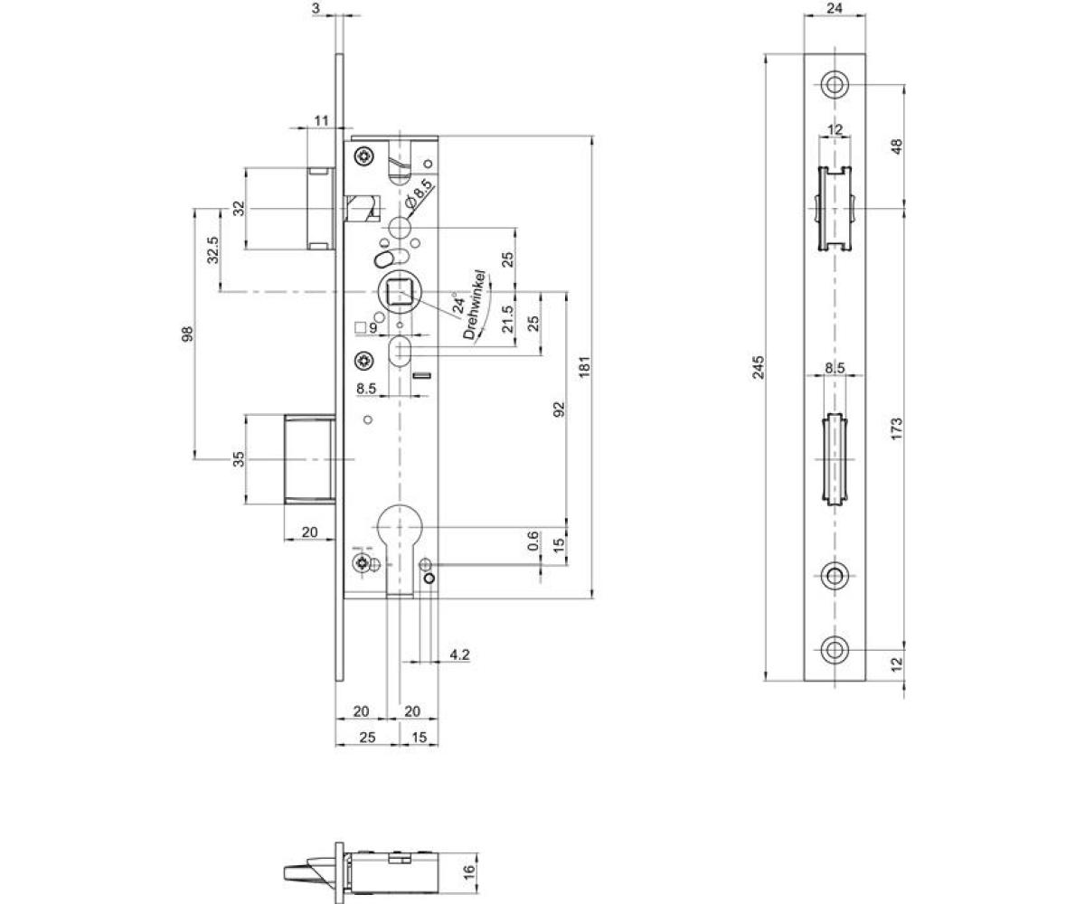 · Stulpbreite: 24mm · Lochung: PZ · RR-Einsteckschl.B 1314 PZ · 24/25/92/10mm DIN L/R STA · 270mm BKS ·