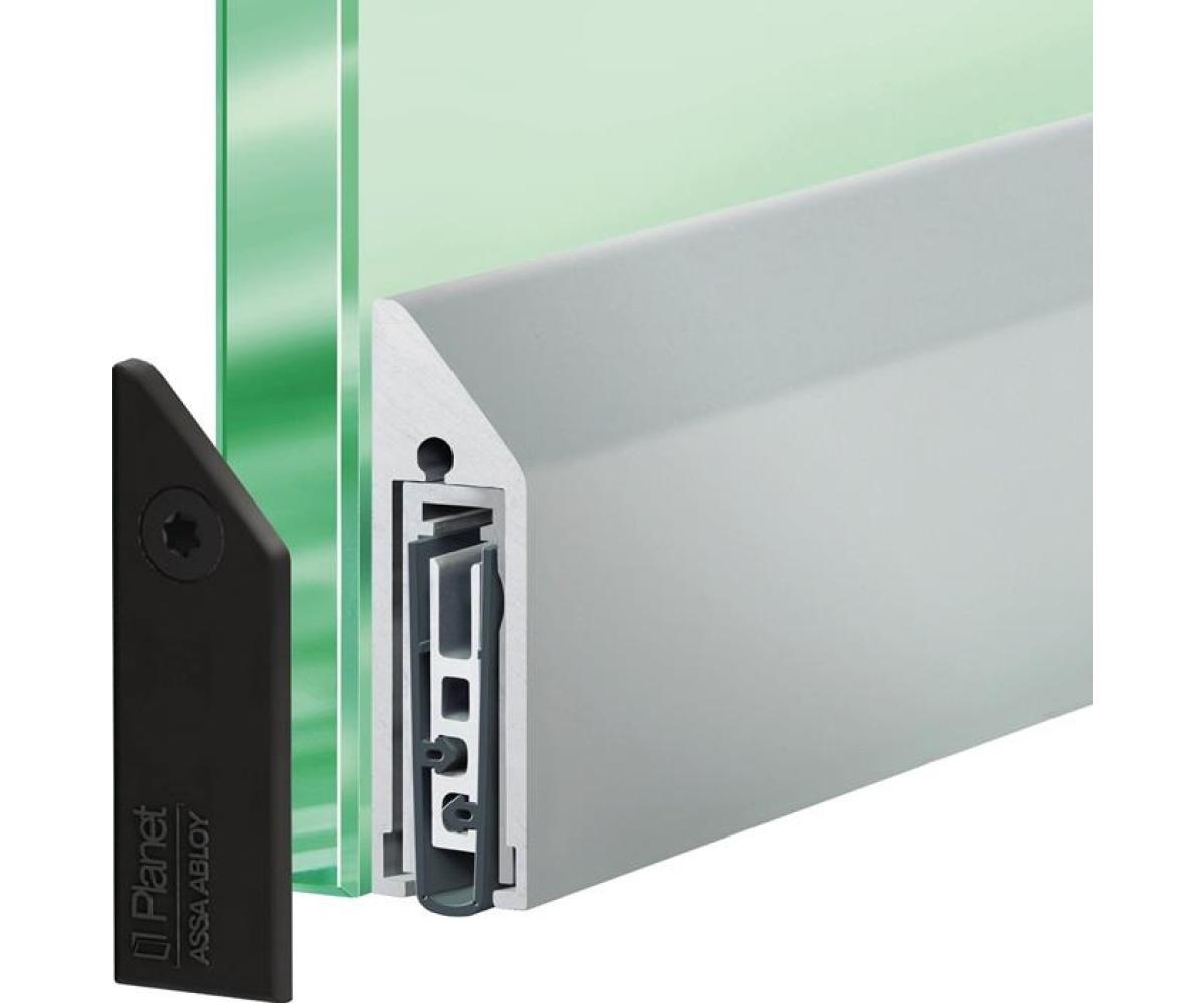 Weitere technische Eigenschaften · Kürzbar um: 125mm · Türdichtung 1-s.z.Kleben · L.709mm B.11,5mm Alu.EV 1 · EV1 · Absenkdichtung für Glas-, Holz-, Metall- und PVC-Türen Hub bis 16 mm Bei optimaler Abdichtung Schalldämmwert bis 48 dB Einfachste Montage mit Klebebandset Durch mitgelieferte Fixierschrauben direkt nach Montage einsatzbereit Für neue und bestehende Türen Elegante, architektonische Designlösung Für linke und rechte Türen einsetzbar Einseitige und geräuschlose Auslösung Dank Parallelabsenkung kein Schleifen über den Boden Automatischer Ausgleich bei schiefem Boden Hochwertige Silikonlippe, seitlicher Überstand einstellbar Einfache Hubeinstellung Kürzbar bis zur nächst kleineren Lagerlänge Automatische Türabsenkdichtung Planet KG-S schmal FH+RD · 48 dB, geeignet für feuer- und rauchhemmende Türen, einseitige Auslösung mit Parallelabsenkung und automatischem Ausgleich bei schiefem Boden, Schutzprofil in EV1 farblos, Edelstahl matt oder schwarz C35 matt eloxiert, zum seitlichen Ankleben. Dichtungshöhe bis 16 mm. Lippe aus selbstverlöschendem Silikon. Schutzprofil und Profil aus Aluminium 11,5 x 38 mm, inkl. schlossseitiger Abdeckplatte bei Flügeltüren. ·