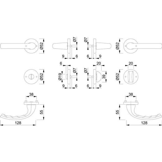 · Befestigungssystem: Schnellstift · Nockenabstand: 38mm · Rosettengrt.Tôkyô · 1710/42KV/42KVS Alu.F1 · rd.SK/OL DIN L/R D/D ·